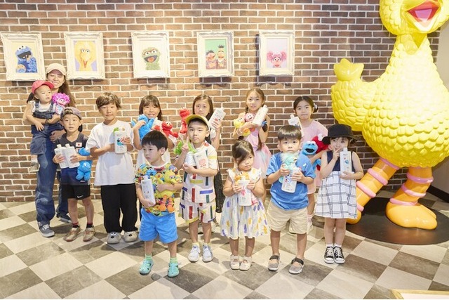 ワークショップの最後には、使い終わった後のボトルを再利用する方法について説明しました。エコストアでは、全国約60カ所*にリフィルステーションを設置しており、使い終わったボトルを持参すれば洗剤など液体商品の内容物のみを購入することができます。これにより、プラスチックの削減やリサイクルの推進に貢献することができます。エルモ、クッキーモンスター、ビッグバードといったセサミストリートの仲間たちに囲まれたカフェエリアで、子供たちは自分が作ったボトルを再利用することでサステナブルな暮らしにつながるアイデアを学びました。