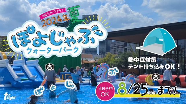 トライト株式会社(本社:大阪府守口市、代表:山田 康生)は、2024年7月13日(土)から8月25日(日)まで、小学生以下のお子様を対象とした夏休み限定の水遊びイベント「ぽよじゃぶウォーターパーク2024」を安満遺跡公園(大阪府高槻市)のサンスター広場エリア及び、人工芝エリアで好評開催中です。今シーズンは人気のスライダーが4つになってよりパワーアップしました。わんぱくキッズからプールデビュー前の小さなお子様までご自分にあったタイプでお遊びいただけます。会場内には常設テントを数カ所設置しており日陰エリアを確保していますが、連日の猛暑日を考慮し、ポップアップテントをお持ち込みいただけるようになりました。