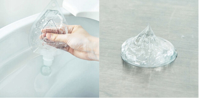 水を流すたびにジェルから界面活性剤が溶け出し、便器表面についた汚れを浮かせて洗い流します。