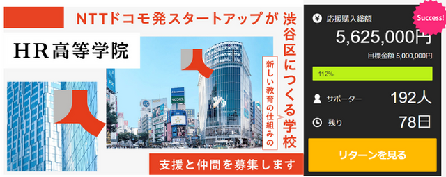 中高生向けキャリア探究サービスを運営する株式会社RePlayce(代表 山本 将裕。読み:リプレイス。以下RePlayce)は、2025年4月開校する通信制サポート校「HR高等学院」のクラウドファンディングを開始31時間で達成いたしました。現在、192人のサポーターの方にご支援賜り、目標金額500万円に対して562万円が集まっています。
