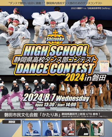 現在、ダンス人口も増えて学校部活としてダンス部も人気が高い中、特に近年はコロナ禍の影響もあって、日々の練習の成果を披露する場が少なく、競技性があるコンテストはあまりありませんでした。そんな高校ダンス部の生徒たちに、目標を持って練習に励んでもらうとともに、練習の成果を披露してもらうため、磐田市(磐田文化振興会)が中心となって「静岡県高校ダンス部コンテストin磐田」を昨年に引き続き開催しました。