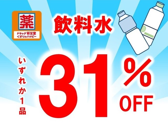 今回のキャンペーンでは暑さ指数危険レベルの31℃にちなんで期間中JAF会員に「ドラッグ新生堂・くすりのハッピー」で利用できる飲料水31%割引クーポンを配信します。