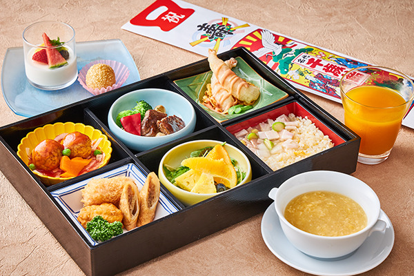 七五三セットは、スープや牛フィレステーキ、蟹フライ、あんかけ炒飯など、お子様が食べやすい味付けでご用意しております。お祝いコースは伊勢海老やふかひれ姿煮など豪華食材を使用して、お祝いの席を演出いたします。ランチタイムは外光が差し込む窓側に面した明るく開放的な個室や、最大22名様までご利用いただける完全個室など、ニーズに合わせてお選びいただけます。