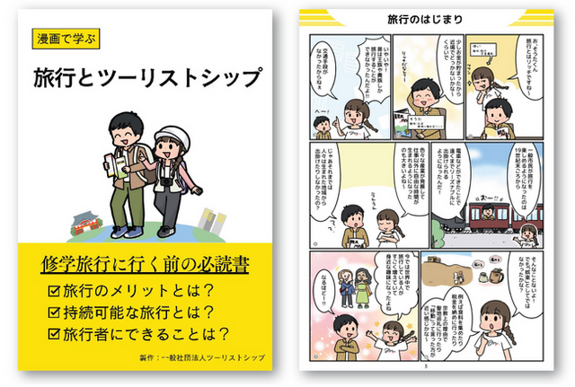 一般社団法人ツーリストシップ(本社:京都市上京区、代表:田中千恵子)は、これまで全国の観光地で旅行者に対するマナー啓発を請け負い、また全国の修学旅行生向けのワークショップを実施してきた中で、修学旅行生に対する「持続可能な観光への理解促進」にさらに力を入れるべきと考え、この度マンガを使った無料教材を製作いたしました。
