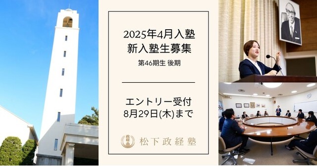 パナソニックの創業者・松下幸之助が設立した松下政経塾(所在地:神奈川県茅ケ崎市)では、2025年4月入塾の新入塾生(第46期生)を募集しております。後期募集のエントリー締切は、8月29日(木)となります。