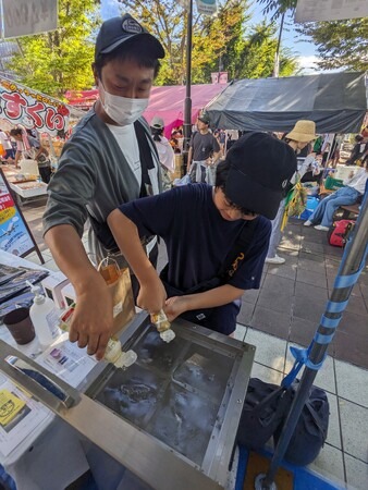 【回収方法】専用の回収BOXを設置し、廃食用油の回収を行います。廃食用油をお持ちいただいた方1回につき1枚、まつりテント内で利用できる「100円引きチケット」を進呈いたします。