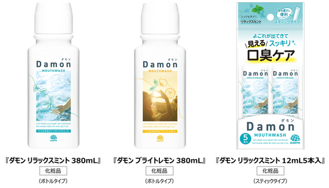 『ダモン』は、口臭の原因の1つであるタンパク質よごれが、オレンジ色のよごれとして見ることができるため※1、洗浄した実感を得やすいマウスウォッシュです。すすぐだけでお口のよごれを除去し、清潔感のある息へと変えてくれます。また、お口に含んだときの香味もこだわり、「すっきり爽快な使い心地のリラックスミント」と「すっきりフレッシュな使い心地のブライトレモン」をご用意しました。洗浄液は、クリアオレンジの液色です。