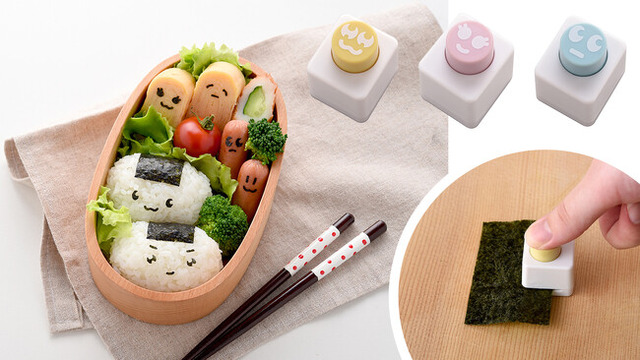 穴あけパンチのようにパチン!と抜くだけで、ハサミでは切るのが難しい、細かい模様の顔のパーツを作ることができる、デコレーション弁当のお助けアイテムです。