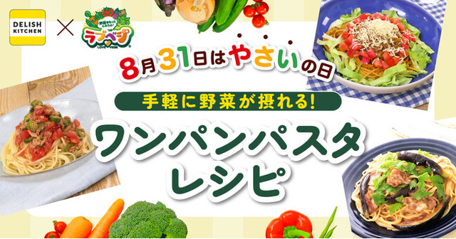 株式会社エブリー(本社:東京都港区、代表取締役:吉田 大成)が運営する日本最大級のレシピ動画メディア『DELISH KITCHEN』は、8月31日の「やさいの日」に向けて、味の素株式会社(本社:東京都中央区、社長:藤江 太郎)が推進する野菜摂取量向上活動「ラブベジ(R)」に賛同し、公式Instagramとアプリにて、簡単・手軽に野菜がとれる “ワンパンパスタ”のレシピを発信します。