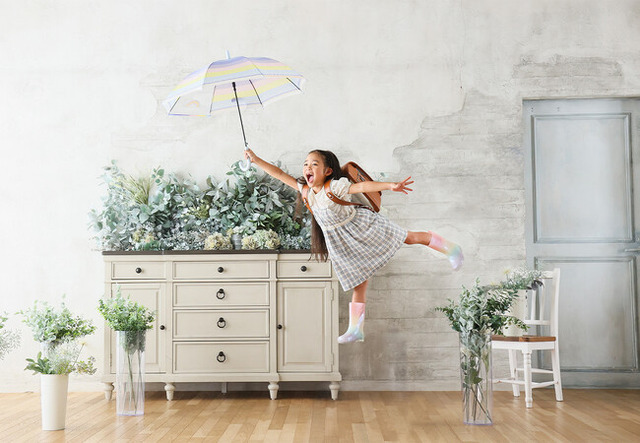 7/26(金)・8/15(木)らかんスタジオ小金井店にて第1弾のイベントが開催されました。招待したお客様にいくつかのシチュエーションでポーズをとっていただき、後に合成をして完成した写真をデータでプレゼントします。参加してくださったお客様は、その場では完成形を見ることはできませんが、楽しそうに様々なポーズに挑戦してくださいました。まるで浮いてるように完成した写真は絵本の中のワンシーンのよう。