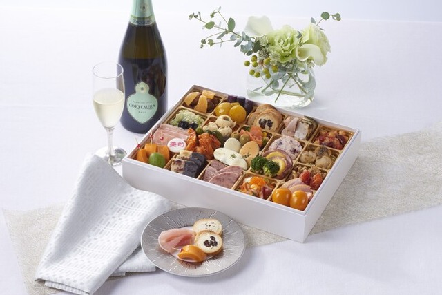 選び抜かれた肉・魚介類のほか、ビタミンや繊維質がとれる美容や健康を意識した”美的食材”を詰合せました。一部の具材にはすっきりとした甘さのオリゴ糖を使用するなど、調味料にもこだわり上品な味わいに仕上げました。伝統的な和のおせち食材は押さえつつ、洋・中のほか伊・仏風の味付けまで。また、前菜・メイン・デザートまで揃いコース料理のように楽しめるラインアップです。