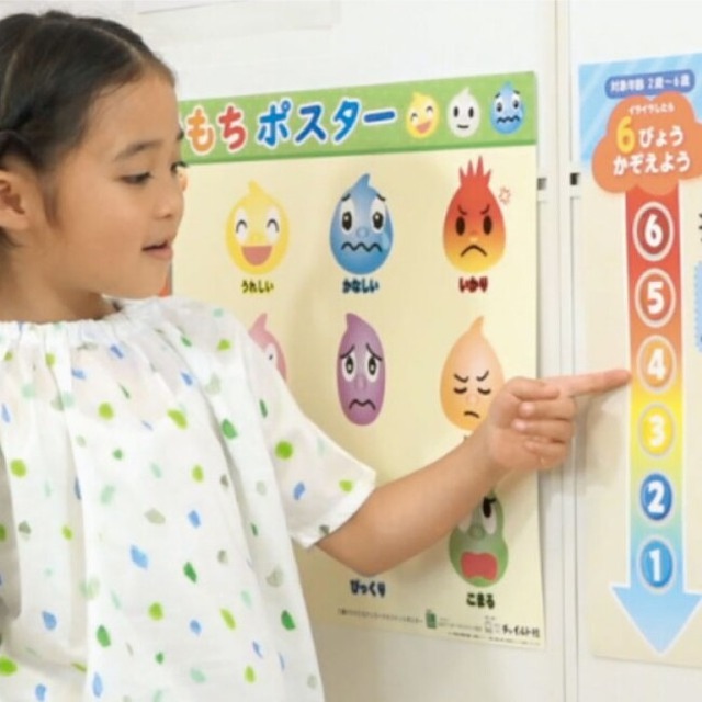 子どもが、ポスターを見ながら6秒数えたり、深呼吸したりすることで、気持ちを落ち着かせることができます。