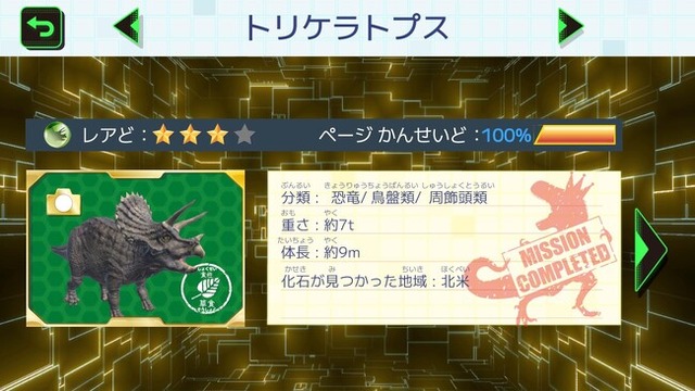 本作では陸・海・空など場所を問わない恐竜・古代生物が41種類が収録されています。ゲームで同じ恐竜を撮影することにより、その恐竜のページの完成度が上がっていきます。完成度が上がっていくと図鑑の内容が解放され、より詳しい情報をみることができ、遊びながら学ぶことができます。