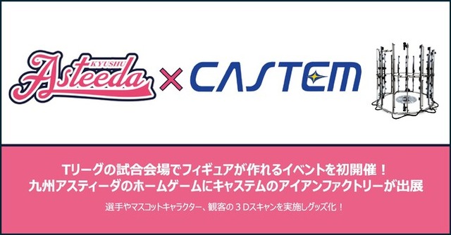 Tリーグ所属プロ卓球チーム「九州アスティーダ」を運営する「九州アスティーダ株式会社」(所在地:福岡県大野城市、代表取締役 川面 創 以下、当チームおよび、当社)は、「株式会社キャステム」(所在地:広島県福山市、代表取締役 戸田 拓夫 以下、キャステム)の協力のもと、2024年9月1日(日)に飯塚市総合体育館にて行われるTリーグの試合会場にて3Dモデルの作成ブースを設置します。
