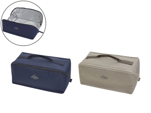 - 内側はお手入れのしやすいシルバーコーティング加工。保冷・保温効果を補助します。表生地は汚れや水をはじくポリエステル素材。上部には持ち運ぶときに便利なハンドル付き。