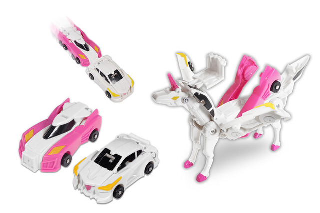 特徴:2種類の車をくっつけると…「シャキーン」とペガサスユニコーンが登場!何度見ても理解不能な超融合がみていてクセになる!?SNSで話題沸騰中の超合体おもちゃ降臨!