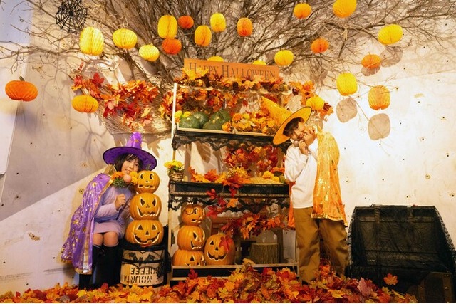 本物の木の枝を使用したシンボルツリーと、かぼちゃの装飾がされたフォトスポットが登場。無料貸し出しの仮装グッズを使って、ハロウィンならではの写真を撮ることができます。