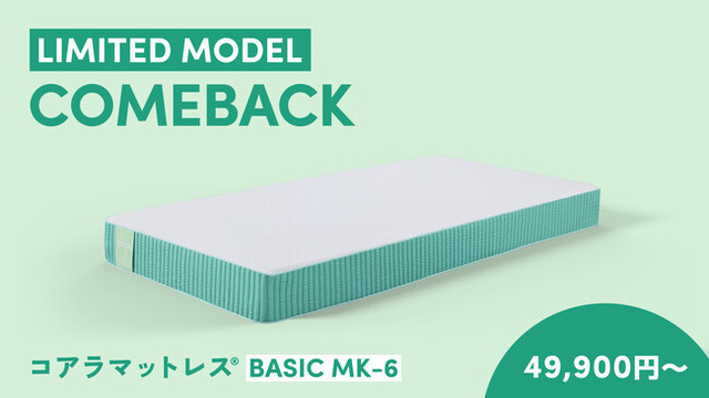 「コアラマットレス BASIC MK-6」は、オリジナルコアラマットレスと同じく、低反発と高反発それぞれのメリットを引き出した独自開発のウレタンフォームを採用。また体圧分散と振動吸収技術、ゾーニング製法により、一晩中、理想の寝姿勢をずっとキープします。「コアラマットレス BASIC MK-6」について詳しくご紹介するスペシャル動画を、コアラ公式サイトにて公開中です。ぜひ、ご覧ください。