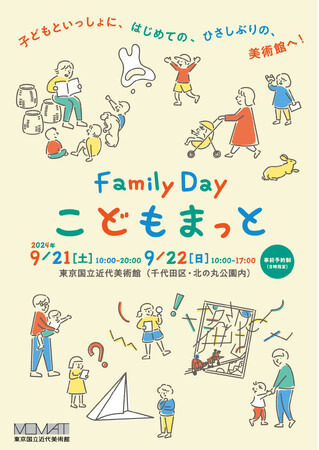 東京国立近代美術館(MOMAT、千代田区・北の丸公園)は、2024年9月21日(土)、22日(日)に「Family Day こどもまっと」を開催します。周りを気にせず子連れで気兼ねなく美術館を楽しめる、特別な二日間です。