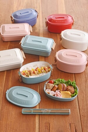 - 「DELICIOUS」の刻印とつやっとした塗装が印象的な2段ランチボックス。豊富なカラーバリエーションでお好みのカラーが見つかります。ゴールドのバックルが高級感を感じます。上段320ml、下段330ml合計650mlで育ち盛りのお子様でも満足できるサイズ。フタはドーム型の形状なので量の調節がしやすく、からあげなどのごろっとしたおかずもつぶれにくい。