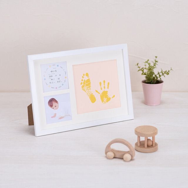 - 大切なお子様の写真と手形足形を一緒に残せるフォトフレーム