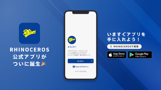 AppStoreもしくはGooglePlayで「国士舘大学アメリカンフットボール部」「RHINOCEROS」と検索!