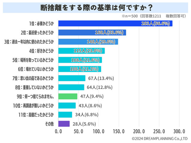 どういう基準で断捨離(要するに処分)しますか?と聞いたところ、最も多い答えが「必要かどうか」でした。