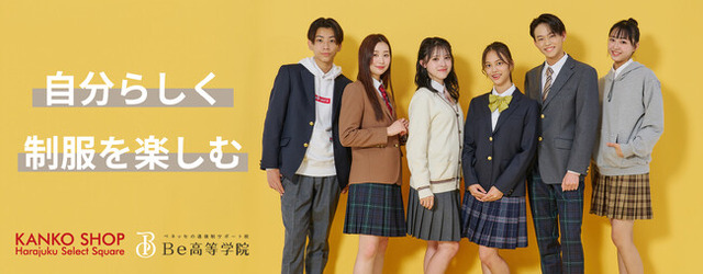 菅公学生服株式会社 (本社:岡山市北区駅元町、代表取締役社長:尾崎 茂 以下:カンコー学生服)のセレクト制服※1を取り扱うカンコーショップ原宿セレクトスクエアは、株式会社ベネッセコーポレーション(本社:岡山県岡山市、代表取締役社長:小林 仁、以下:ベネッセ)の通信制サポート校「ベネッセの通信制サポート校 Be高等学院」(びーこうとうがくいん、以下:Be高等学院)と提携し、制服購入推奨店に指定されたことをご報告いたします。今後は、入学予定者を対象とした着こなし座談会なども予定しています。