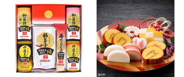 内容量:4種4品(蒲鉾90g/伊達巻100g/玉子焼80g/生菓子1個)