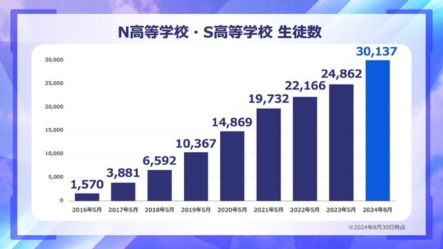 学校法人角川ドワンゴ学園N高等学校・S高等学校(以下、N/S高)は、2024年8月30日時点の在籍生徒数が30,000名を突破したことをお知らせします。
