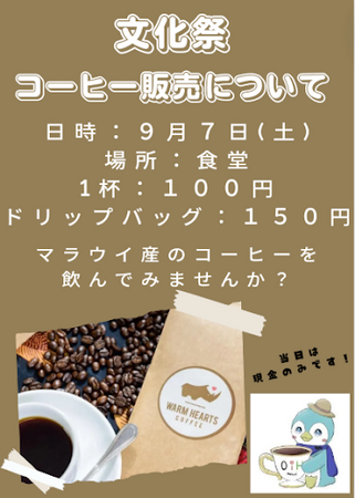 そこで、大阪国際中学校高等学校(大阪府守口市)の生徒が、NPO法人せいぼじゃぱんと手を組み、今回の講座の集大成として、2024年 9月7日 (土) 大阪国際中学校高等学校で行われる文化祭で、マラウイ産のフェアトレードコーヒーの販売を実施します。