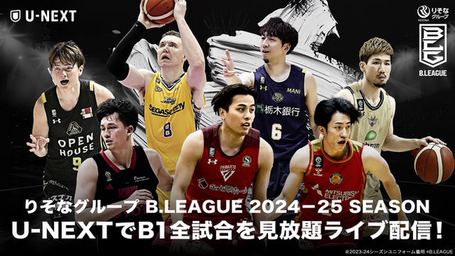 U-NEXTでは、10月に開幕される『りそなグループ B.LEAGUE 2024-25 SEASON』のB1リーグ戦720試合全てをライブ配信いたします。U-NEXT会員の方であれば追加課金なしで、全ての試合をお楽しみいただけます。