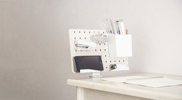 教科書等を立ててデスクスペースを確保できるのみならず、有孔ボードに別売りのパーツを追加して文房具をかけることができます。重さは700gと軽量設計で持ち運びが簡単。
