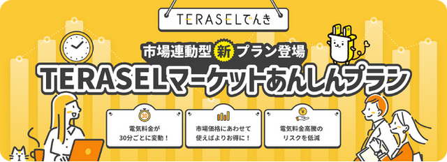 「TERASELマーケットあんしんプラン(以下「本プラン」)」は、日本卸電力取引所(JEPX)の市場価格と連動する電力量料金に上限を設けることにより、市場連動型プランのメリットを生かしつつ市場急騰時の電気料金の大幅な上昇リスクにも対応したプランとなっております。
