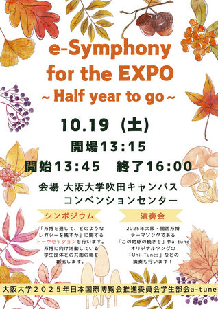 一般社団法人Re-Generation (代表理事:右近宣人/本社:大阪府大阪市)は、2024年10月19日(日)に大阪大学のa-tuneが開催する「e-Symphony for the EXPO ~Half year to go~」に参加しますので、ご報告いたします。