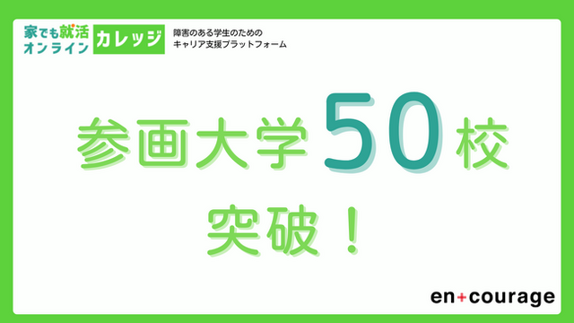 障害のある学生など、働きづらさを抱える若者の就職支援を行う株式会社エンカレッジ(大阪府大阪市 代表:窪貴志)が運営している、全国の障害のある学生に向けたキャリア支援プラットフォーム「家でも就活オンライン カレッジ(略称:家カレ)」は、参画大学数が2024年8月に50校を超えたことをお知らせいたします。