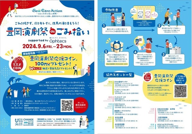 一般社団法人海と日本プロジェクト in ひょうごは、2024年9月6日(金)~23日(月・休)に開催される「豊岡演劇祭2024」と連携し、「豊岡演劇祭deごみ拾い」を開催いたします。このイベントは、日本財団が推進する海洋ごみ対策プロジェクト「海と日本プロジェクト・CHANGE FOR THE BLUE」の一環で開催するものです。