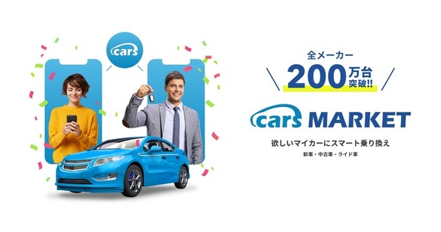 グローバルカーライフテックカンパニー cars株式会社が提供する欲しいマイカーにスマート乗り換えできる「cars MARKET(カーズマーケット)」の全メーカー登録台数が200万台を突破ました。これにより、さらなる「cars MARKET」で買いたい人と売りたい人の希望額でマッチングする世界の実現に向けて取り組んでいきます。