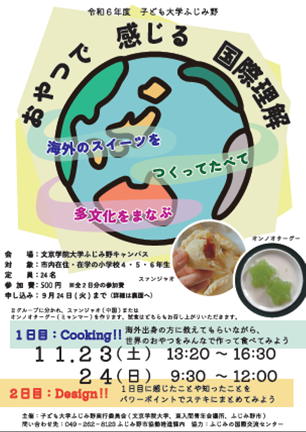 海外出身の先生と一緒に世界のおやつをつくり、味わうことで、さまざまな文化にふれ、子どもの知的好奇心を呼び起こすような学びができる授業を開校します。