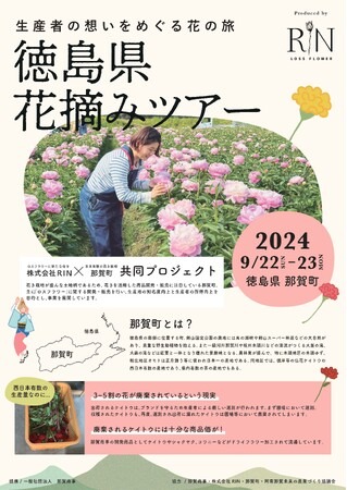 徳島県那賀町は、花の栽培が盛んな町です。四季折々の花が咲く美しい町で、那賀町と一般社団法人那賀商事、そしてRINは花摘みツアーを企画。今年4月、全国のベアミネラル カウンターのディスプレイを彩った、ロスフラワーを展開している花生産農家を回り、収穫やフラワーアレンジメントなどを体験してもらうことによって、「ロスフラワー(R)︎」のこと、花農家さんの大変さや想いなどを肌で感じ、花がもっと身近な存在に、生活の中に入り込んでいき、「花のある生活を文化にする」という想いを込めて開催します。
