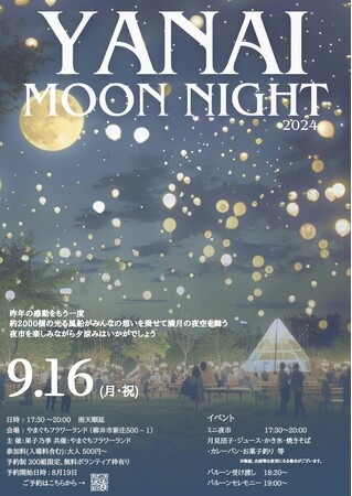 「YANAI MOON NIGHT~あの感動をもう一度~今年も過去最多2000個の光る風船“ルミエム”が“ほぼ”満月の夜空を舞う」開催概要