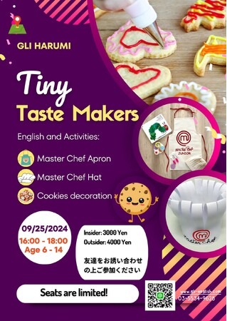 国内外のボーディングスクール進学支援などで目に見える成果を提供するGlobal Learner's Institute(GLI)は、2024年9月25日(水)に「Tiny Taste Makers」というクラフト、アート、料理をテーマにした楽しいイベントを晴海校で開催します。詳細はGLIの公式ウェブサイトでご確認ください。