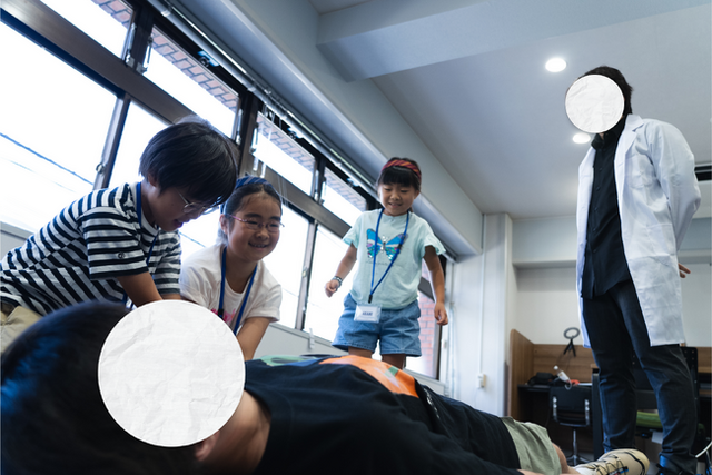 小学生から参加可能な緊急医療を学ぶプログラムを通して、医療人材となるためのスキルセットへの理解を深めることを、今回の課外活動では目的としています。