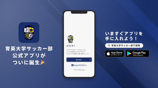 AppStoreもしくはGooglePlayで「育英大学サッカー部」と検索!
