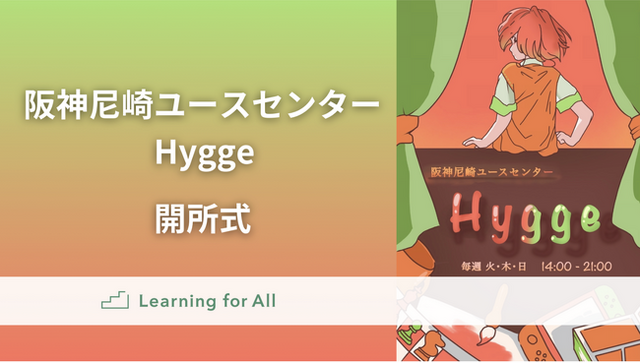 認定NPO法人 Learning for All (本部:東京都新宿区、代表理事:李炯植、以下「LFA」) は、2024年8月6日(火)に兵庫県尼崎市にてユースセンター「Hygge(ヒュッゲ)」を開所しました。本センターは、子ども・若者が自由に利用できる居場所として、予防と介入の機能を備えています。