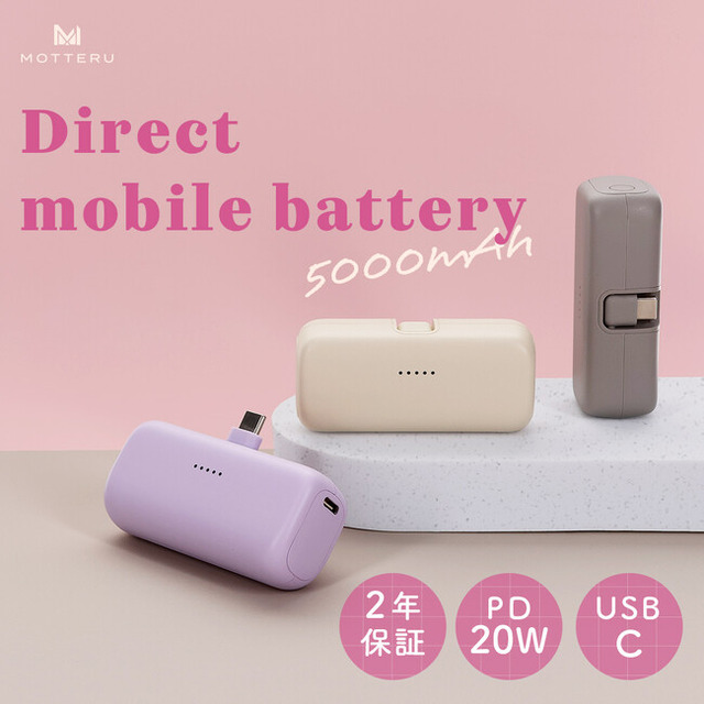 5,000mAh PD20対応 ダイレクトモバイルバッテリー(MOT-MB5002-EC)