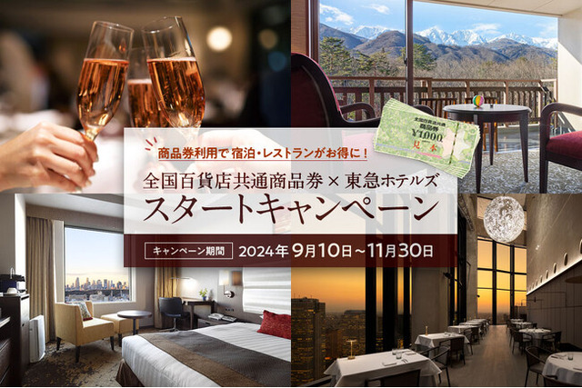 東急ホテルズ&リゾーツ株式会社(東京都渋谷区、代表取締役社長 村井 淳)は、2024年9月1日より精算における全国百貨店共通商品券の使用受付を開始しました。これに伴い、同券の利用でご宿泊やレストランをお得にお楽しみいただける企画を取り揃えたスタートキャンペーンを、9月10日より実施いたします。