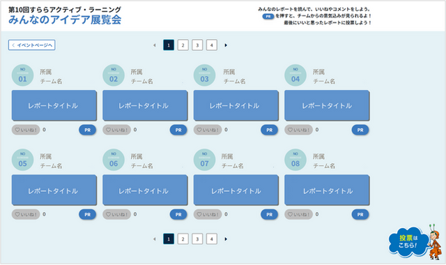 1.参加者は、各出展チームのレポートと各チームの意気込みを表したPR(画像・動画・テキストのいずれか)の閲覧が可能。