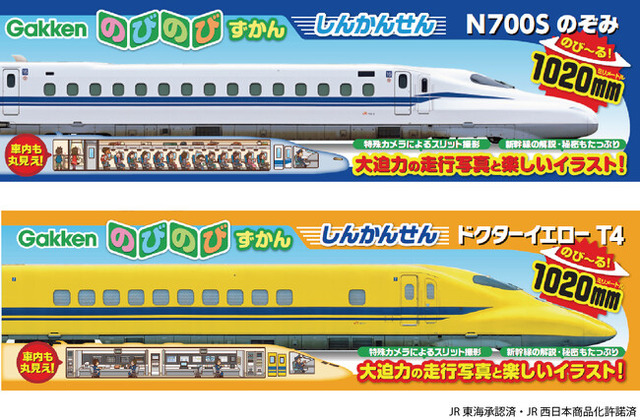▲上:『のびのびずかんしんかんせん N700S のぞみ』/下:『のびのびずかんしんかんせん ドクターイエロー T4』