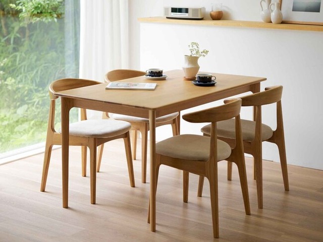 商品開発においては、新築戸建ての住宅に合う上質さを、手の届く価格帯で実現することに注力しました。木目が美しく贅沢なオーク材を使用すると共に、デザイン面でも圧迫感の少ないサイズ感とデザインを意識しました。特にテーブルやチェアにおいてはデザインの肝となる脚の形状に特にこだわり、試作品の模型であるモックを何度も削って微調整を重ねて完成。見る角度によって表情が変わるのが絶妙なラインに仕上げました。また角がないデザインでお子さまがいる家庭でも安心して使えます。